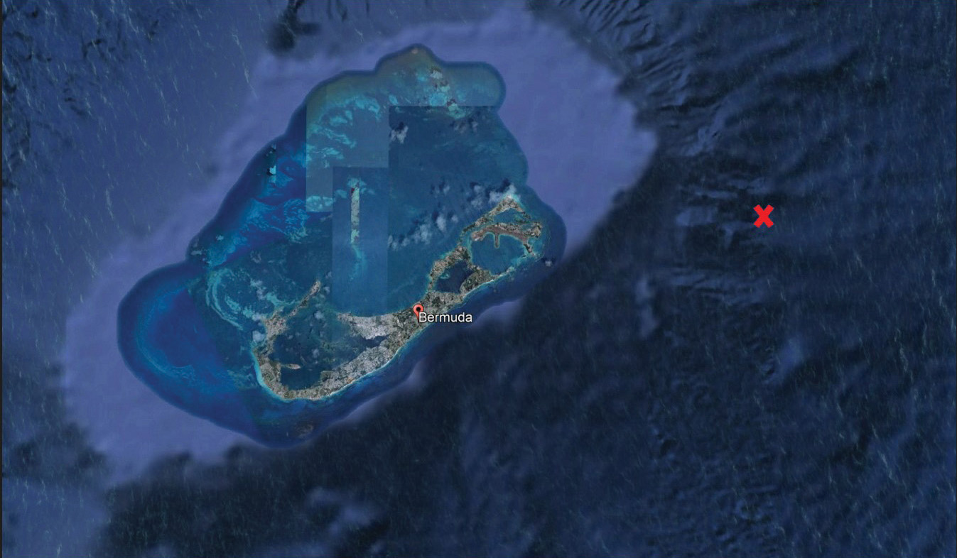 When the new generation of the acoustic release (R Series) was designed, a test plan was created and implemented to deploy this new release off the Bermuda coast in 2016. The test took place in around 2200 meters of water east of St. George’s, Bermuda, where a 2000-meter depth can be achieved as close as 11 miles offshore. See below for the ap-proximate deployment location shown by the red “X”. The boat and support services were provided by the Bermuda Institute of Ocean Sciences (BIOS) in St. George.