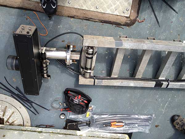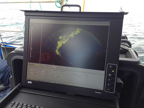 The SeaBat 7128 ​was tied to the port side of a small fishing vessel (Figures 1-2). The dry end consisting of the sonar processor and monitor was contained in a shipping case (Figure 3).