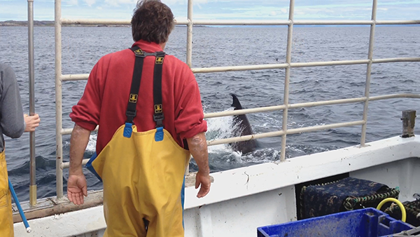 Figure 4. Basking shark within a few metres of the vessel
