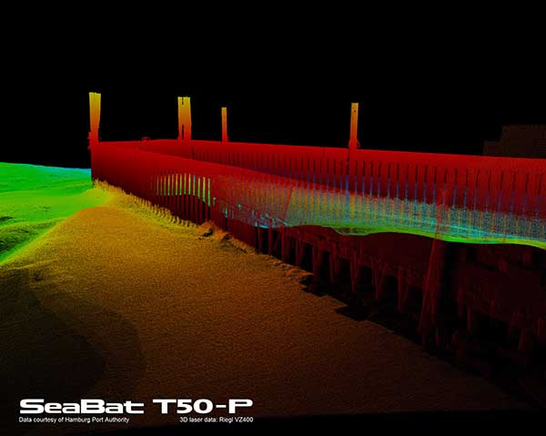 To carry out the survey HPA used a SeaBat T50-P multibeam echosounder interfaced with an Applanix POS MV system. The multibeam echosounder was combined with a Riegl VZ400 laser scanner
