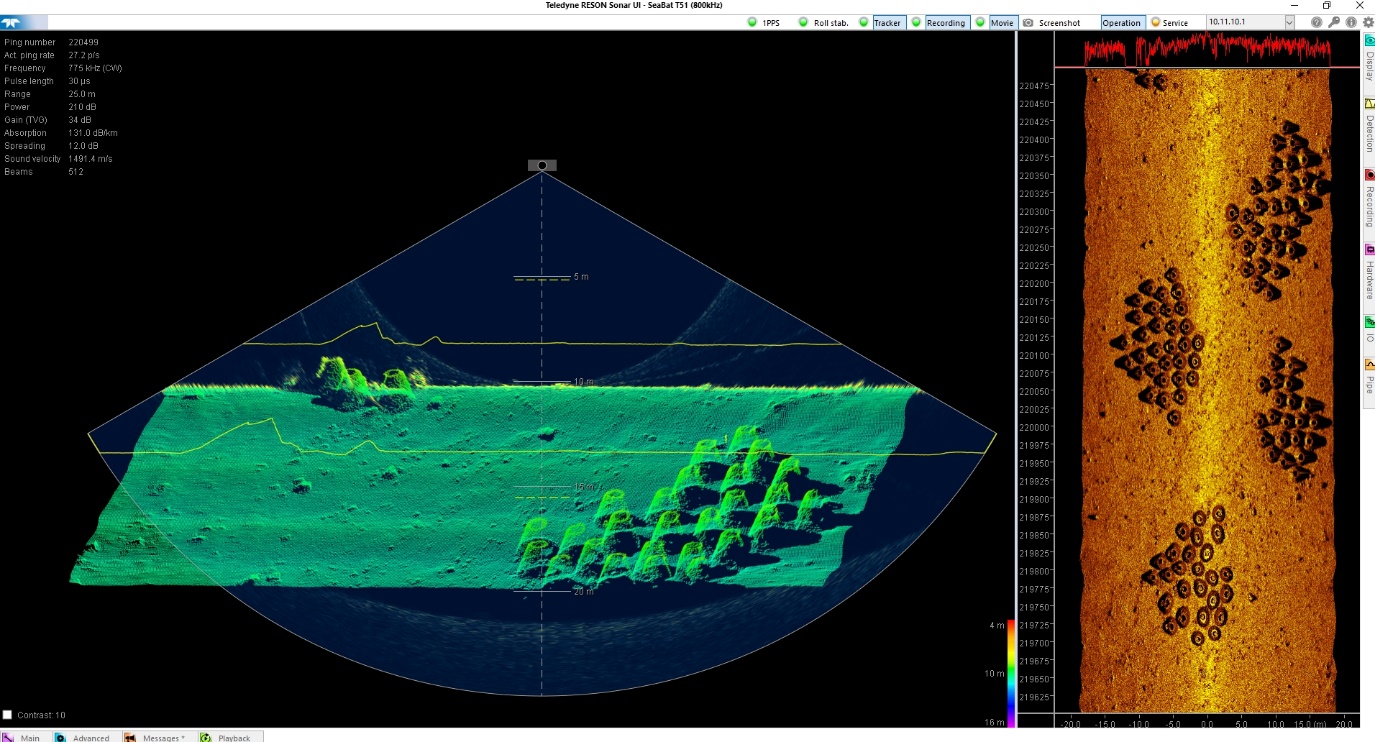 All the images of the artificial reefs are captured with a SeaBat T51 at 800 kHz. For your survey this gives you: