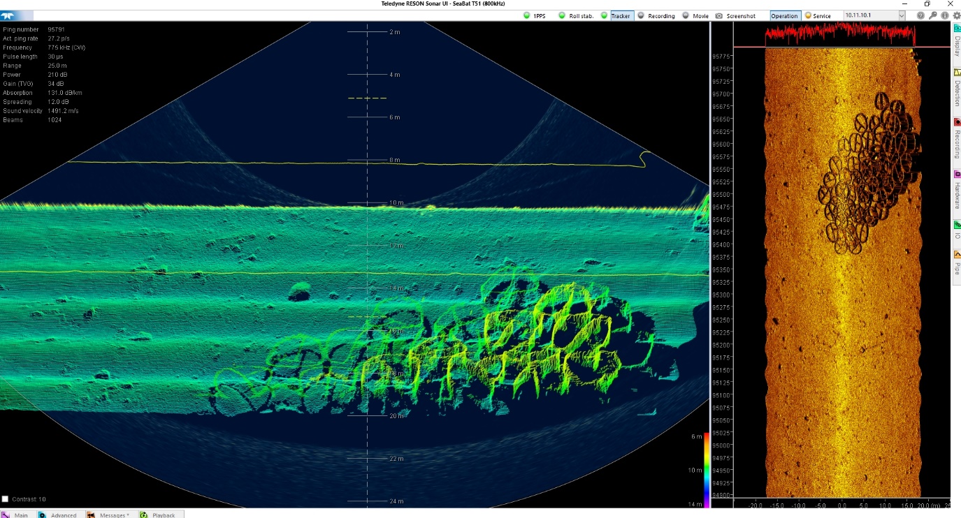 Below you see concrete rings. These make up an excellent area with hiding spots for marine life; but also an acoustically challenging area for multibeam sonars.