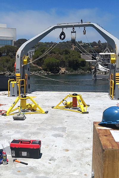 Teledyne RDI, was lowered to the bottom of the sea to sample vertical velocity profiles that were then used to map the spatial and temporal circulation patterns of stretches of the SLO Bay current. One goal was to learn how these waters move through fronts – thin and highly mobile barriers between adjacent waters – and how to capture them. The